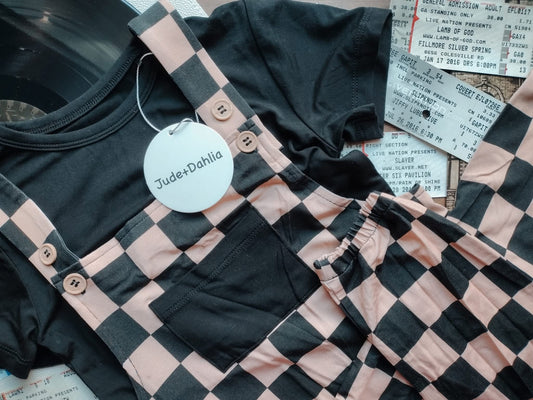 Not A Phase Kids Solid Tee+Printed Overalls Set